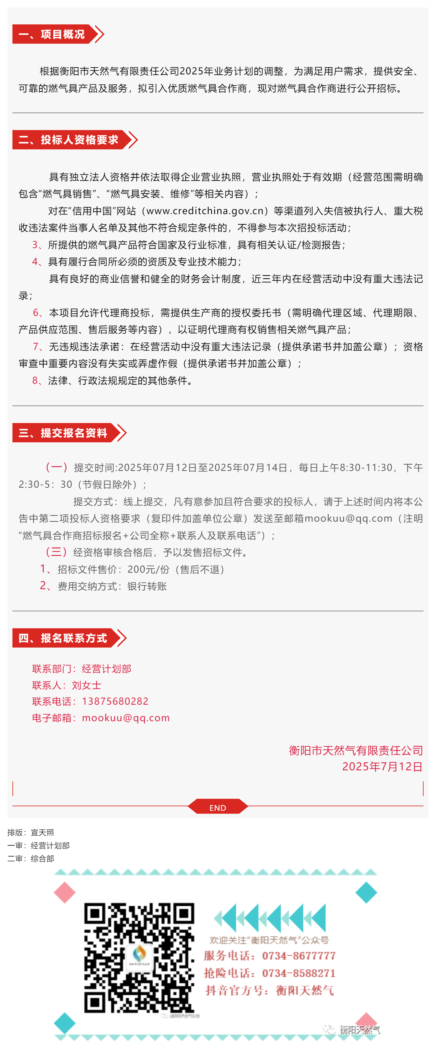 招標(biāo)公告丨衡陽市天然氣有限責(zé)任公司2025年燃?xì)饩吆献魃倘雵袠?biāo)公告